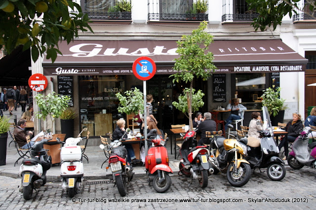 Z racji braku czasu następnego dnia zrobiłam sobie zwiedzanie przy pomocy turystycznego busa. Że była to pomyłka przekonałam się później. Bus ma sens w zatłoczonej Barcelonie, natomiast w Sevilli większość atrakcyjnych miejsc leży na odległość spaceru. Mi najbardziej podobała się dzielnica Triana z krętymi uliczkami i pięknymi ceramicznymi wykończeniami domów i klatek schodowych. Natknęłam się nawet na uliczkę szkół i pracowni ceramiki. Warto też wspomnieć o obleganej turystami La Giraldzie i całym placu, który robi niesamowite wrażenie.